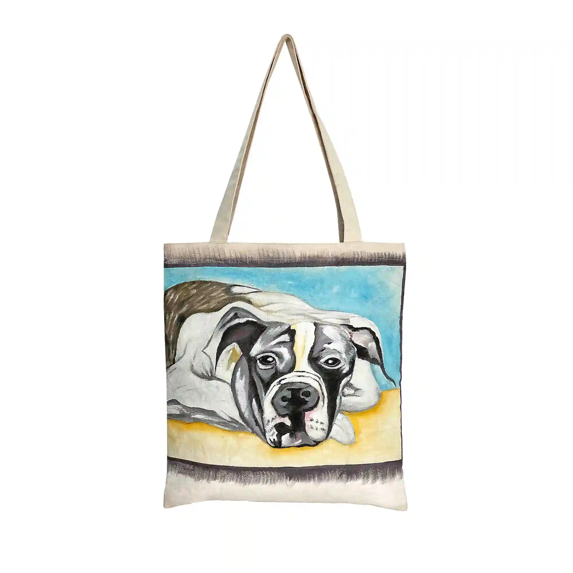 Home Bags Hand Painted Lazy Dog | Tote Bag | Hand Painted | Cotton Canvas